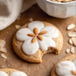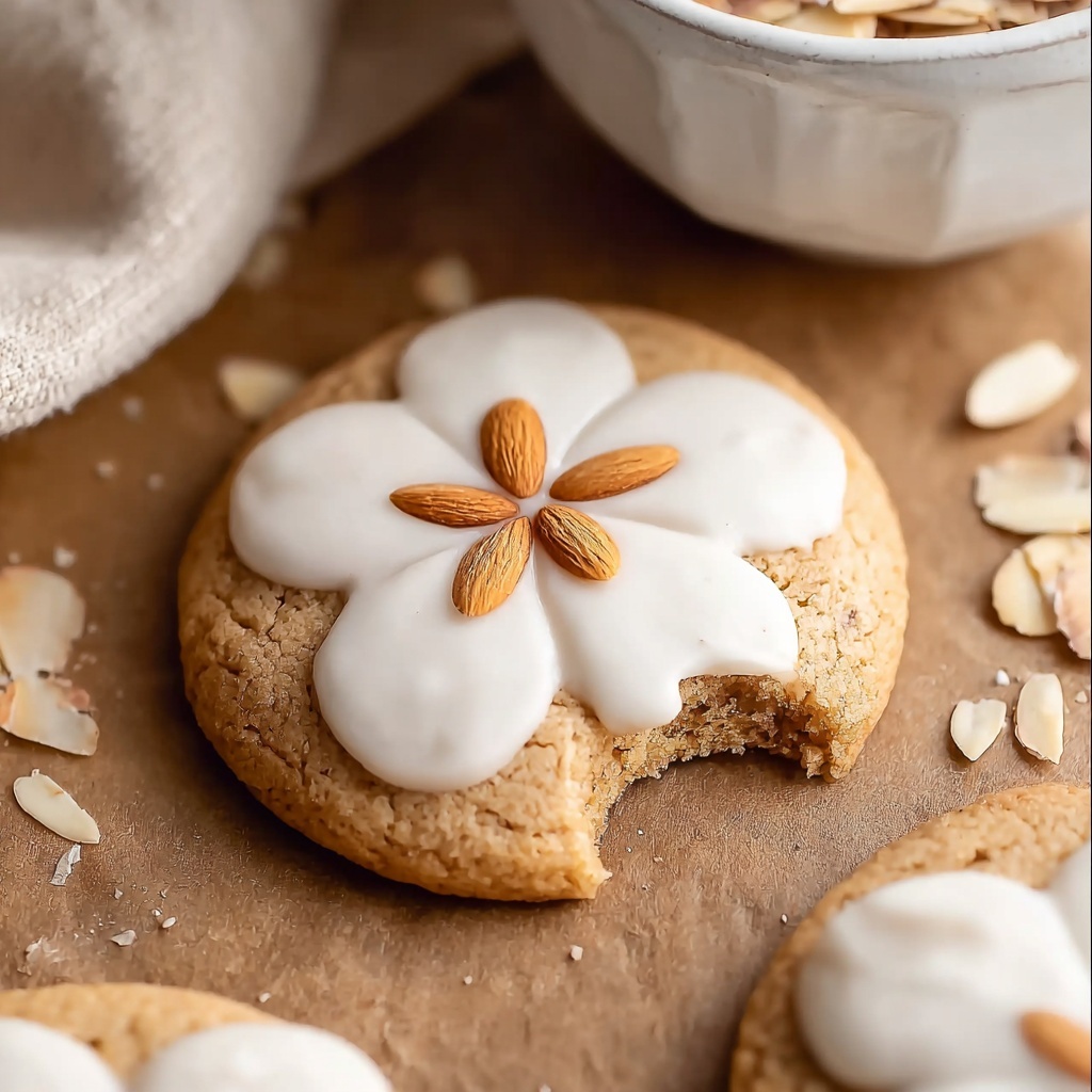 10. Glaze and Top: Spoon the almond glaze over each cooled cookie, gently spreading evenly. Top each cookie with sliced almonds and allow the glaze to set fully before serving.