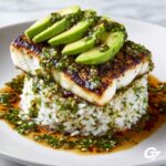 - Assemble the Stack: Layer a portion of fragrant cooked jasmine rice onto each plate, place a grilled chicken breast on top, and spoon a generous amount of the avocado mixture over the chicken.