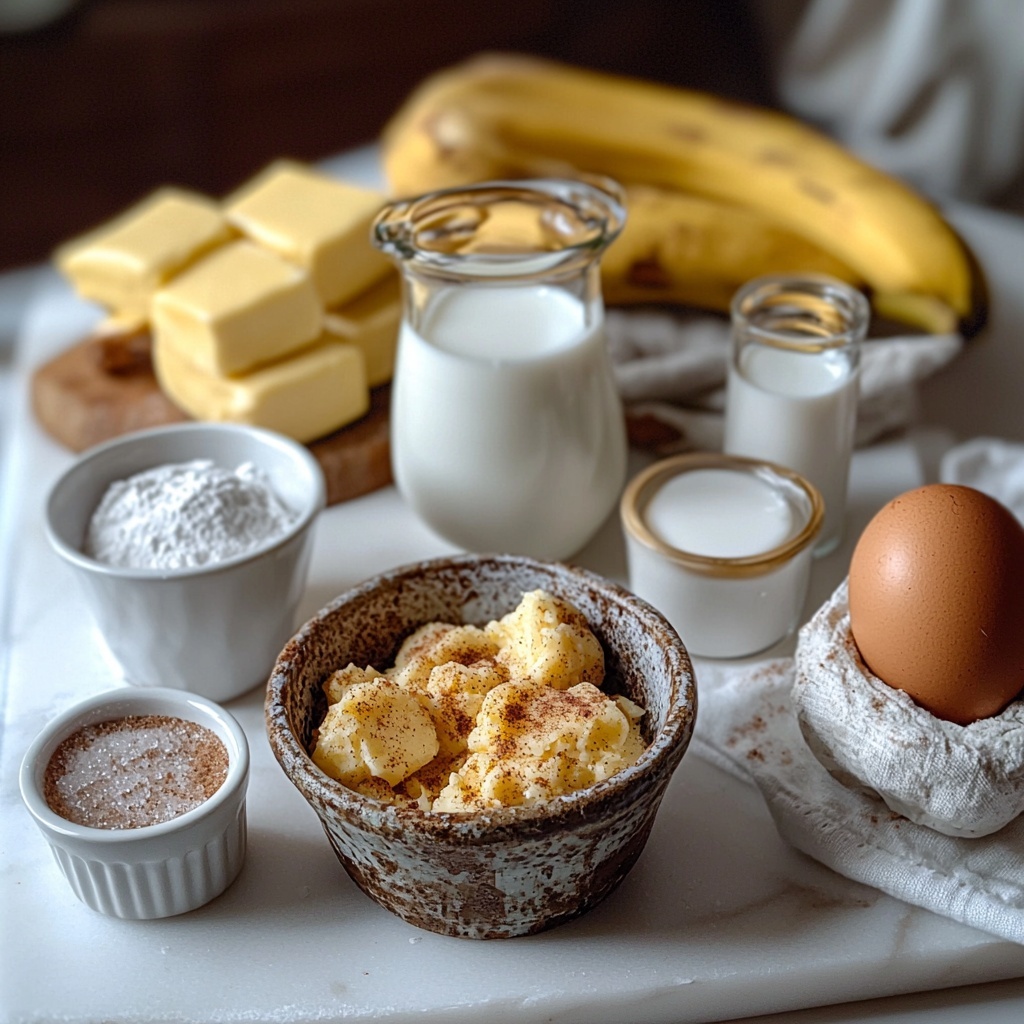 The magic of this Banana Cinnamon Roll Cake Recipe lies in its simple yet thoughtful combination of ingredients. Each component plays a key role in creating a tender crumb, balanced sweetness, and that irresistible cinnamon swirl. From the creamy mashed bananas to the tender buttermilk-infused batter, these ingredients are staples that you might already have in your kitchen.