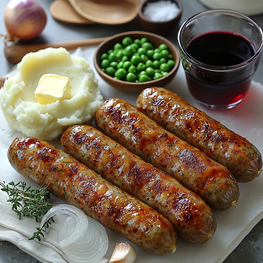 While peas are the traditional accompaniment, this recipe also pairs wonderfully with buttered green beans, roasted carrots, or sautéed mushrooms. These veggies add contrasting textures and vibrant hues that balance out the rich, meaty sausages and creamy mash.