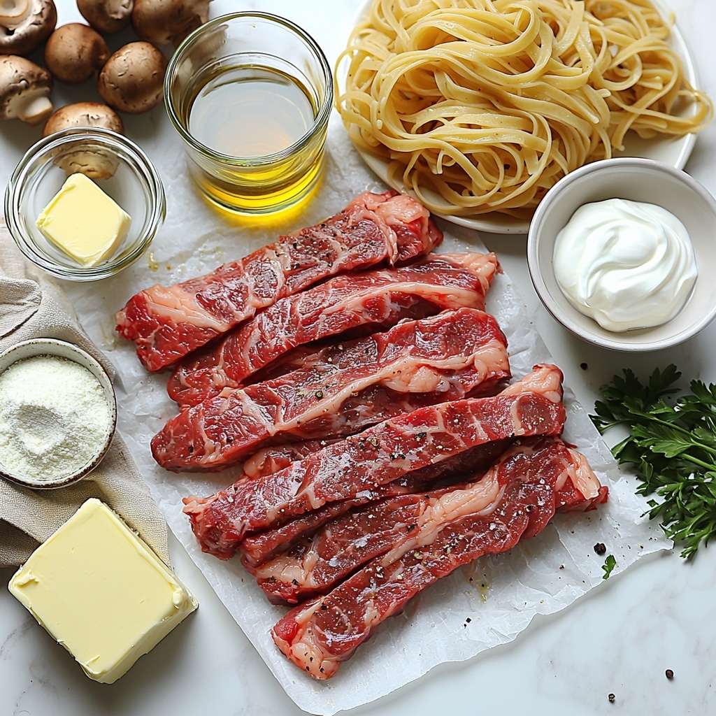 These ingredients are straightforward yet essential, coming together to build the depth, creaminess, and heartiness that define a great beef stroganoff. Each one plays a crucial role—from the tender beef to the aromatic garlic and earthy mushrooms—making this dish flavorful and comforting.