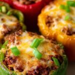 Beef Stuffed Bell Peppers are a classic comfort food featuring colorful bell peppers filled with a savory mixture of ground beef, rice, and tomatoes, seasoned with Italian herbs and cumin. Topped with melted mozzarella cheese, this hearty dish is perfect for a satisfying family meal.