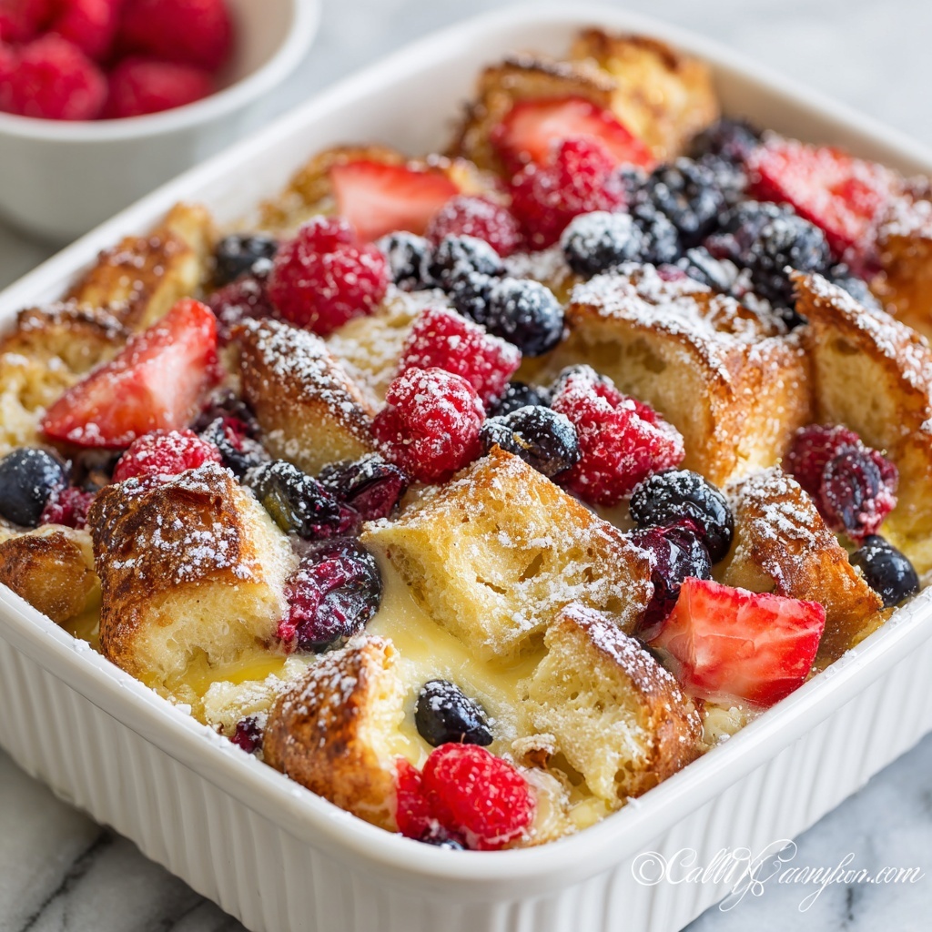 A delicious and comforting Berry Croissant Bake that combines flaky croissants with fresh berries and a creamy custard mixture. This easy-to-make breakfast casserole is perfect for weekend brunches and can be prepared ahead of time for a stress-free morning.