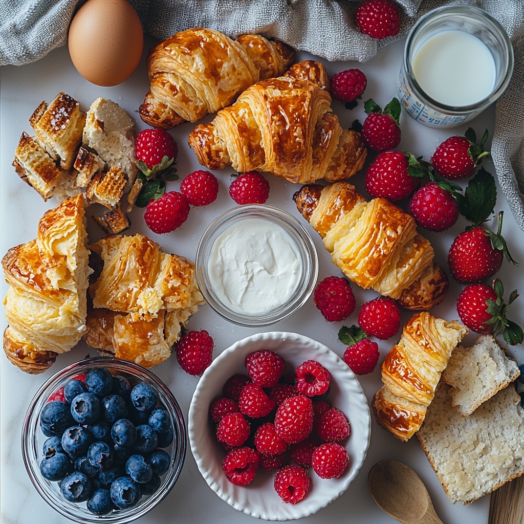 Getting started with this Berry Croissant Bake Recipe is delightfully straightforward. Each ingredient plays a special role in creating the perfect balance of richness, sweetness, and fresh berry bursts that define the dish.