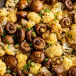 A delicious and healthy Cauliflower Mushroom Skillet featuring caramelized onions, sautéed mushrooms, and tender cauliflower florets cooked with aromatic garlic and Italian seasoning. This quick and easy one-pan recipe is perfect as a flavorful side dish or a light main course.