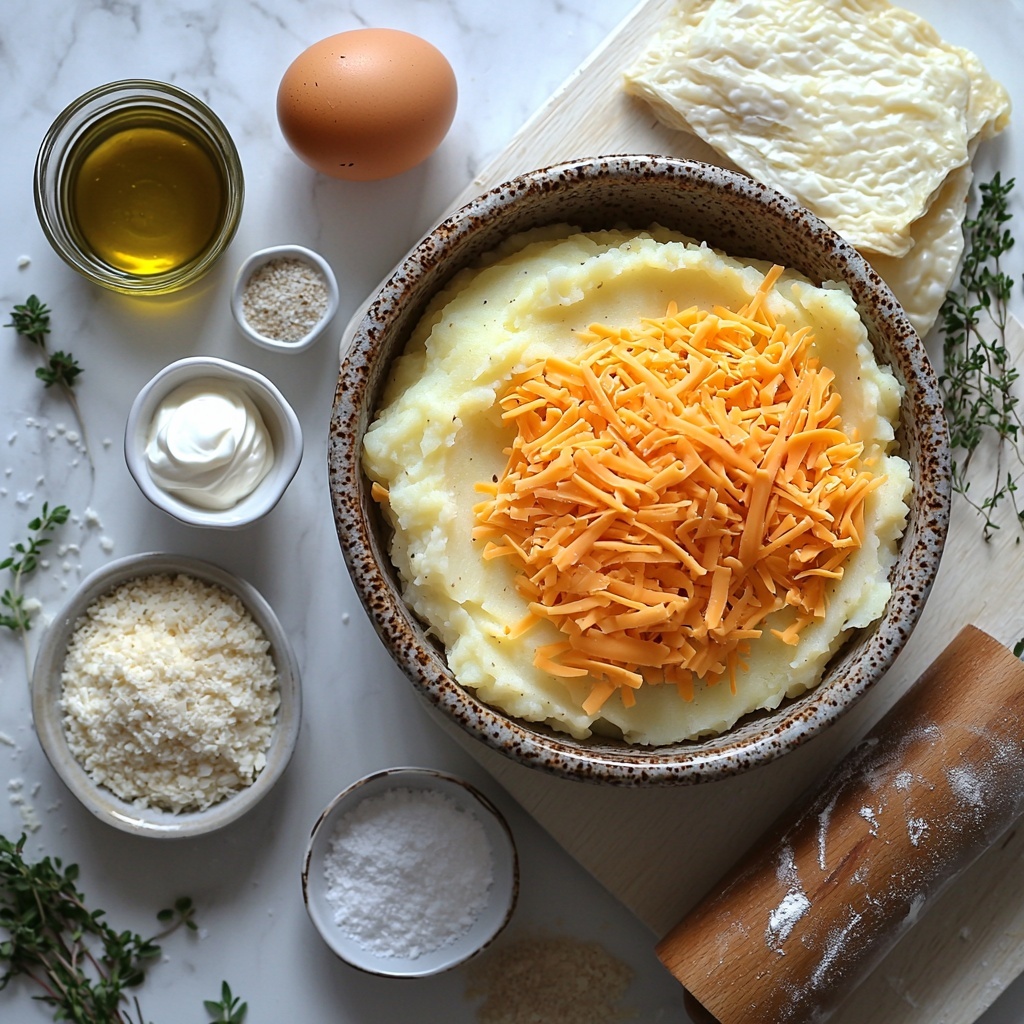 1. Prepare the Mashed Potatoes: If you’re using freshly made mashed potatoes, let them cool slightly. If using leftovers, make sure they are smooth and creamy. In a bowl, combine the mashed potatoes, cheddar cheese, Parmesan cheese, sour cream, garlic powder, onion powder, salt, pepper, and the egg. Mix until everything is fully incorporated.