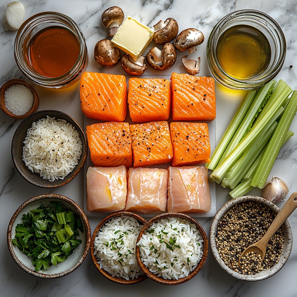 This comforting Chicken and Mushroom Soup combines tender chicken, earthy mushrooms, and aromatic herbs in a flavorful broth with rice. The soup is prepared by searing chicken, sautéing vegetables, and simmering the ingredients together to develop deep flavors, making it a hearty and satisfying meal perfect for chilly days.