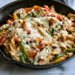 Sprinkle the grated provolone cheese evenly over the entire skillet’s contents. Cover the skillet with a lid and let the cheese melt slowly, which typically takes about 2 to 3 minutes. Watching that creamy cheese transform into a luscious blanket is pure comfort food magic and adds the signature richness that defines the Chicken Cheesesteak Skillet Recipe.