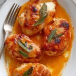 Fresh sage leaves make an elegant and fragrant garnish for this dish. A light sprinkle of freshly cracked black pepper or a drizzle of the pan sauce around the plate adds a professional touch and enhances the presentation.