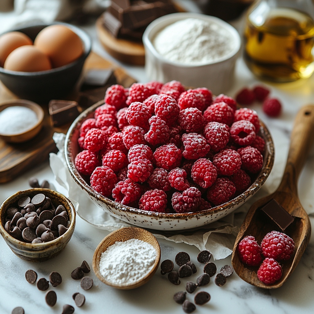 Every ingredient in this Chocolate Raspberry Cake Recipe is carefully chosen to create the ultimate balance of flavor, texture, and color. From the deep cocoa powder that gives the cake its decadent chocolate taste to the fresh raspberries that add a naturally sweet and tart pop, each component plays an essential role.