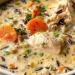 This creamy chicken and wild rice soup is a comforting and hearty dish featuring tender chicken, wholesome wild rice, and a blend of fresh vegetables simmered in rich chicken broth and finished with smooth heavy cream. Perfect for a cozy meal, this soup offers a delicious balance of flavors and textures.