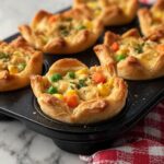 Reheat your mini pot pies in a 350°F (175°C) oven for about 10-12 minutes to refresh the crust’s flakiness and warm the filling thoroughly. Microwaving works in a pinch but may soften the crust, so the oven is always best for keeping that wonderful texture.