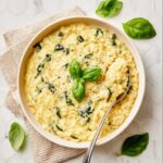 This creamy orzo pasta recipe is a luscious and comforting dish made with toasted orzo cooked in savory chicken stock, enriched with butter, heavy cream, lemon zest, and parmesan cheese. Finished with fresh basil, this flavorful pasta is perfect as a satisfying side or a light main course.