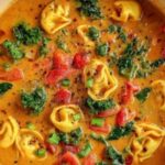 Reheat the soup gently on the stovetop over medium-low heat, stirring occasionally to prevent scorching. If the soup is too thick, add a splash of vegetable stock or water to reach your desired consistency. Avoid high heat to keep the cream from curdling and the tortellini tender.