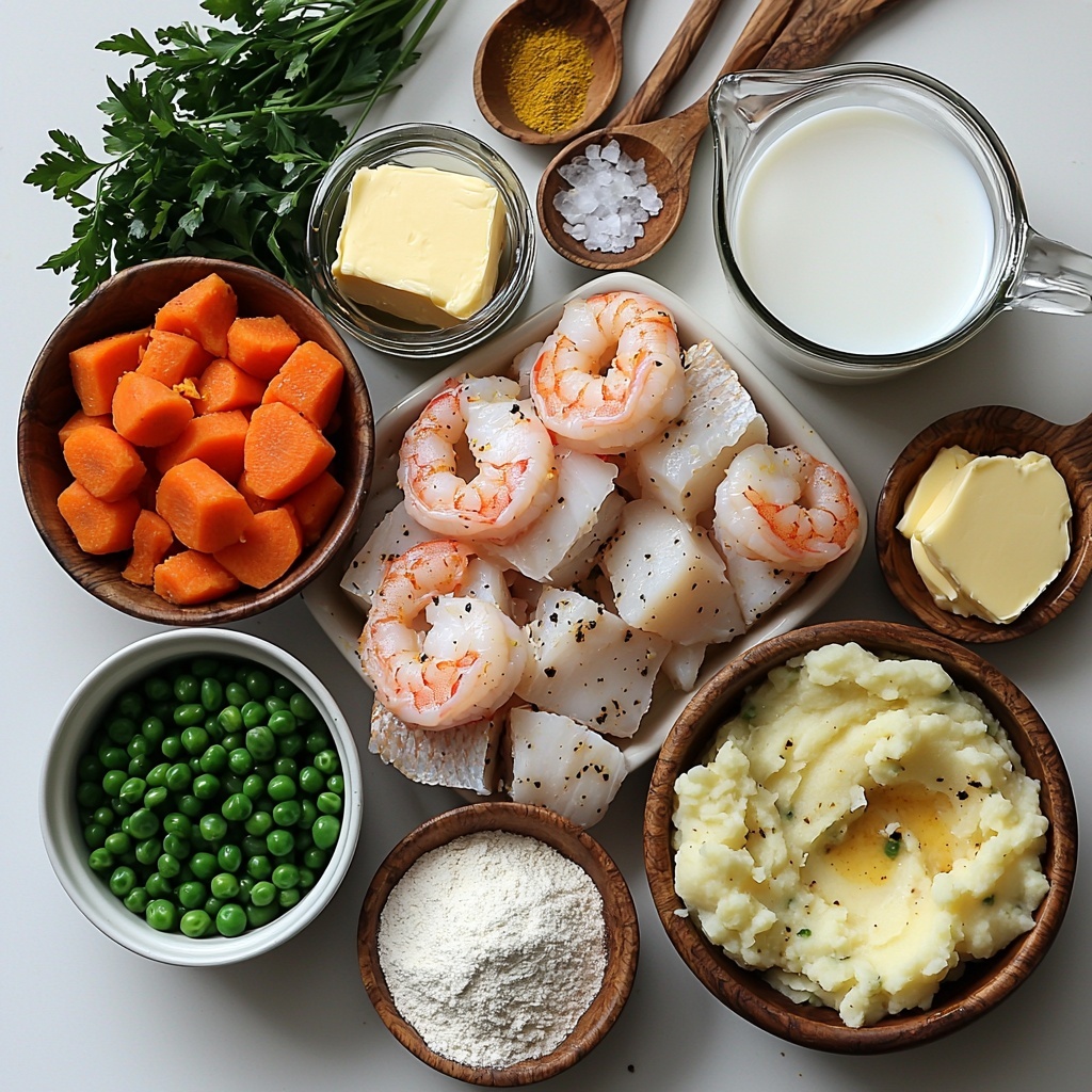 Don’t let the list scare you—it’s packed with simple, fresh, and pantry-friendly ingredients that together create deep layers of flavor and gorgeous texture. Every component has a purpose, whether it’s the subtle sweetness of the carrots or the silky richness of the butter, bringing this Curried Fish Pie Recipe to life.