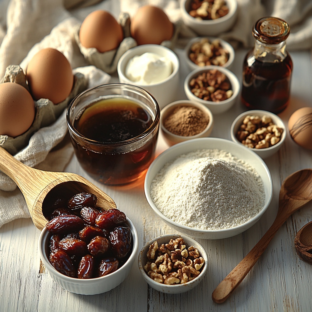 This recipe calls for a handful of simple, pantry-friendly ingredients that are key to achieving its unique flavor and texture. Each component plays an important role, whether it’s the tender chewiness from the dates or the warm spice undertones from cinnamon and nutmeg.