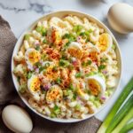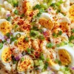 This Deviled Egg Pasta Salad is a creamy, tangy, and satisfying dish that combines perfectly cooked elbow macaroni with classic deviled egg flavors. Enhanced with crisp celery, sharp red onion, and tangy pickles, all tossed in a zesty dressing made from mayonnaise, Dijon mustard, and apple cider vinegar, this salad is ideal for potlucks, picnics, or a refreshing side dish to any meal.
