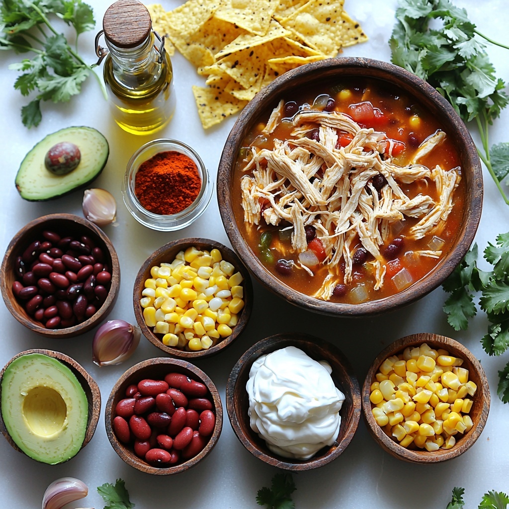 These ingredients are straightforward but essential—they each play a special role in creating the vibrant, hearty texture and bold flavor this soup is known for. From the savory cooked chicken to the colorful medley of beans and corn, every component builds a comforting and wholesome bowl of goodness.