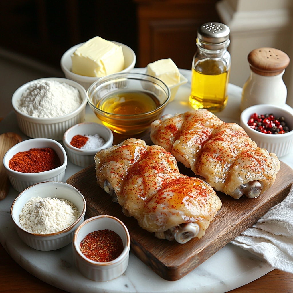 - Marinate and Prepare Chicken: Place chicken thighs in a bowl and pour in 1 cup of buttermilk. Let them marinate in the refrigerator for at least 1 hour to tenderize and infuse flavor.