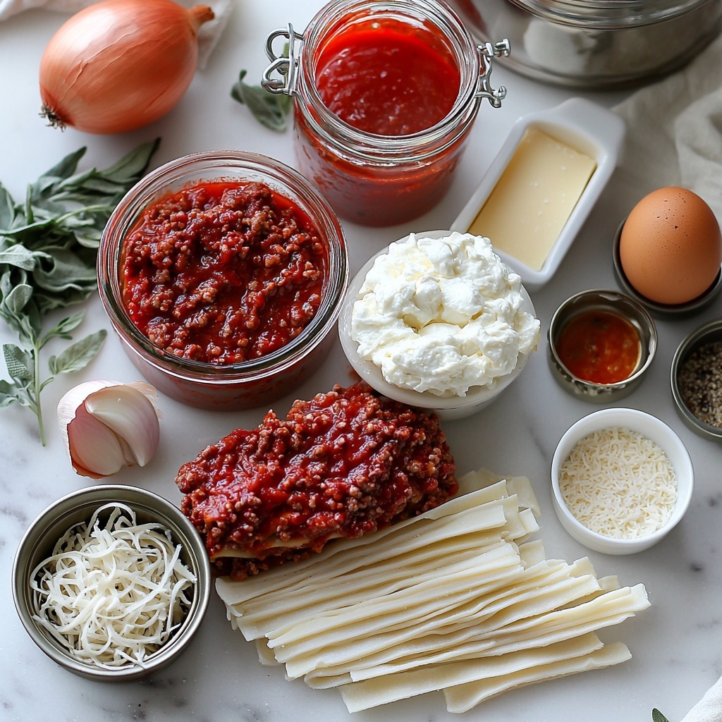 The magic of this Easy Slow Cooker Lasagna Recipe lies in its simple yet essential ingredients. Each one plays an important role—whether it’s building deep savory flavors or creating that irresistible creamy texture and bubbly golden topping that everyone loves.