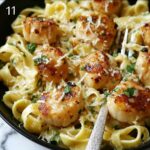 Absolutely! While fettuccine or linguine is recommended because their long strands hold the creamy sauce perfectly, you can substitute with penne, rigatoni, or even spaghetti if that’s what you have on hand. Just adjust cooking times according to the pasta you choose.