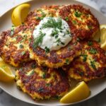 Transfer your cooked patties to a serving plate and immediately garnish them with fresh lemon wedges and sprigs of herbs. The final touch could be a dollop of Greek yogurt or tzatziki on the side, adding a creamy coolness that contrasts beautifully with the zesty patties.