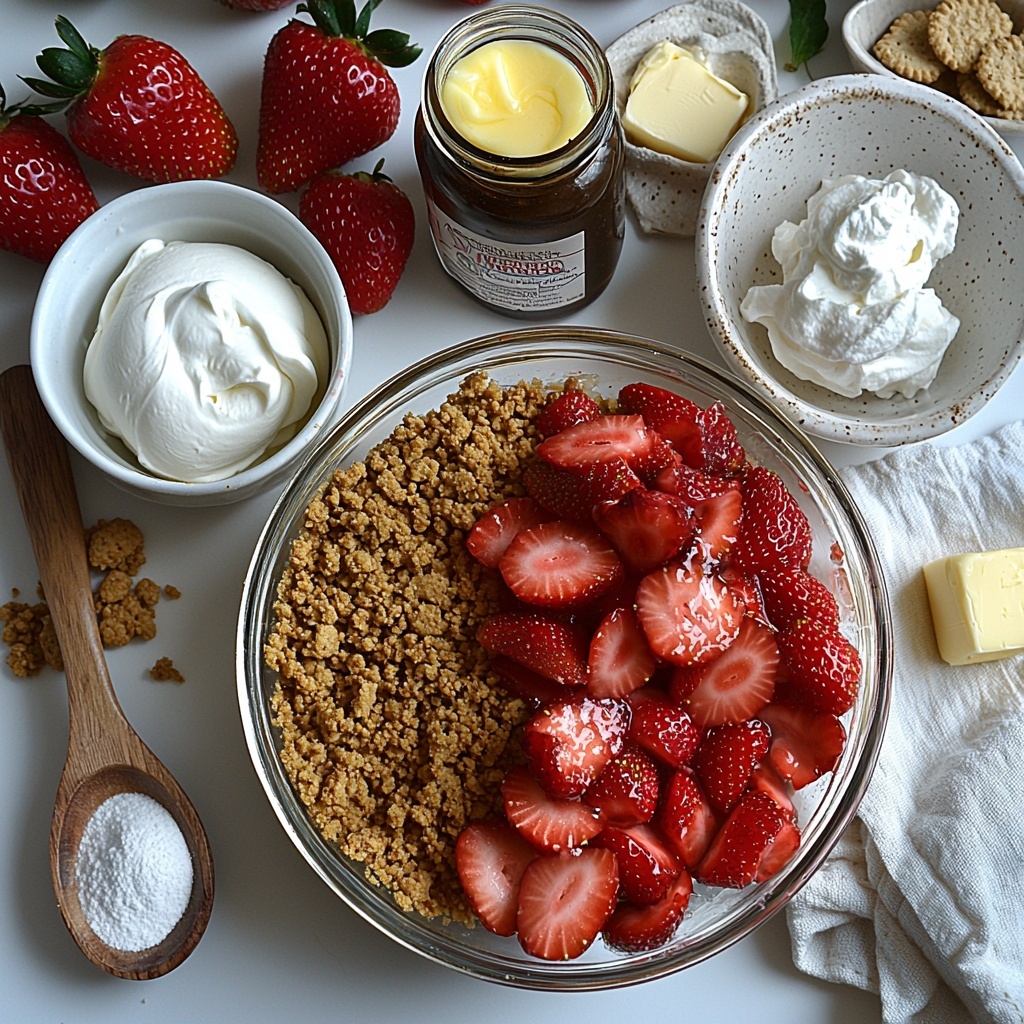 Creating the perfect Heavenly Strawberry Shortcake Cheesecake Bars Recipe relies on a handful of simple yet essential ingredients. Each component plays a critical role: from the buttery graham cracker crust that provides a solid foundation, to the smooth, tangy cheesecake filling, and the vibrant strawberry compote that lifts the whole bar with fresh, fruity flavor.