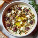 This Herb and Feta Olive Oil Dip is a flavorful and versatile Mediterranean appetizer that combines tangy feta cheese with fresh herbs, garlic, and a drizzle of extra virgin olive oil. Perfect for serving with bread, pita chips, or fresh vegetables, this no-cook dip comes together quickly, making it an ideal choice for gatherings or a tasty snack.