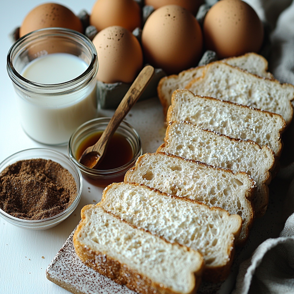 This Homemade French Toast Sticks Recipe calls for a handful of straightforward, everyday ingredients that work beautifully together to deliver rich flavor, perfect texture, and just the right amount of sweetness. Each component has a special role, from the smooth custard base to the crackly cinnamon sugar coating.