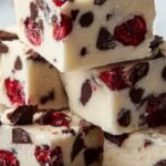 This irresistible Cherry Garcia Fudge recipe combines creamy white chocolate and sweetened condensed milk with maraschino cherries and semi-sweet chocolate chips for a decadent, no-bake treat. Perfectly smooth and rich, this fudge sets quickly in the fridge, making it an easy yet impressive dessert to enjoy or gift.