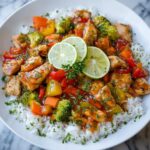 This Irresistible Sweet Chili Chicken Bowl with Coconut Lime Drizzle combines tender, juicy chicken breast cooked in a sweet and tangy chili sauce with vibrant mixed vegetables, served over fluffy cooked rice. Finished with a refreshing coconut lime drizzle, this dish offers a perfect balance of flavors and textures, making it an easy and delicious weeknight meal.