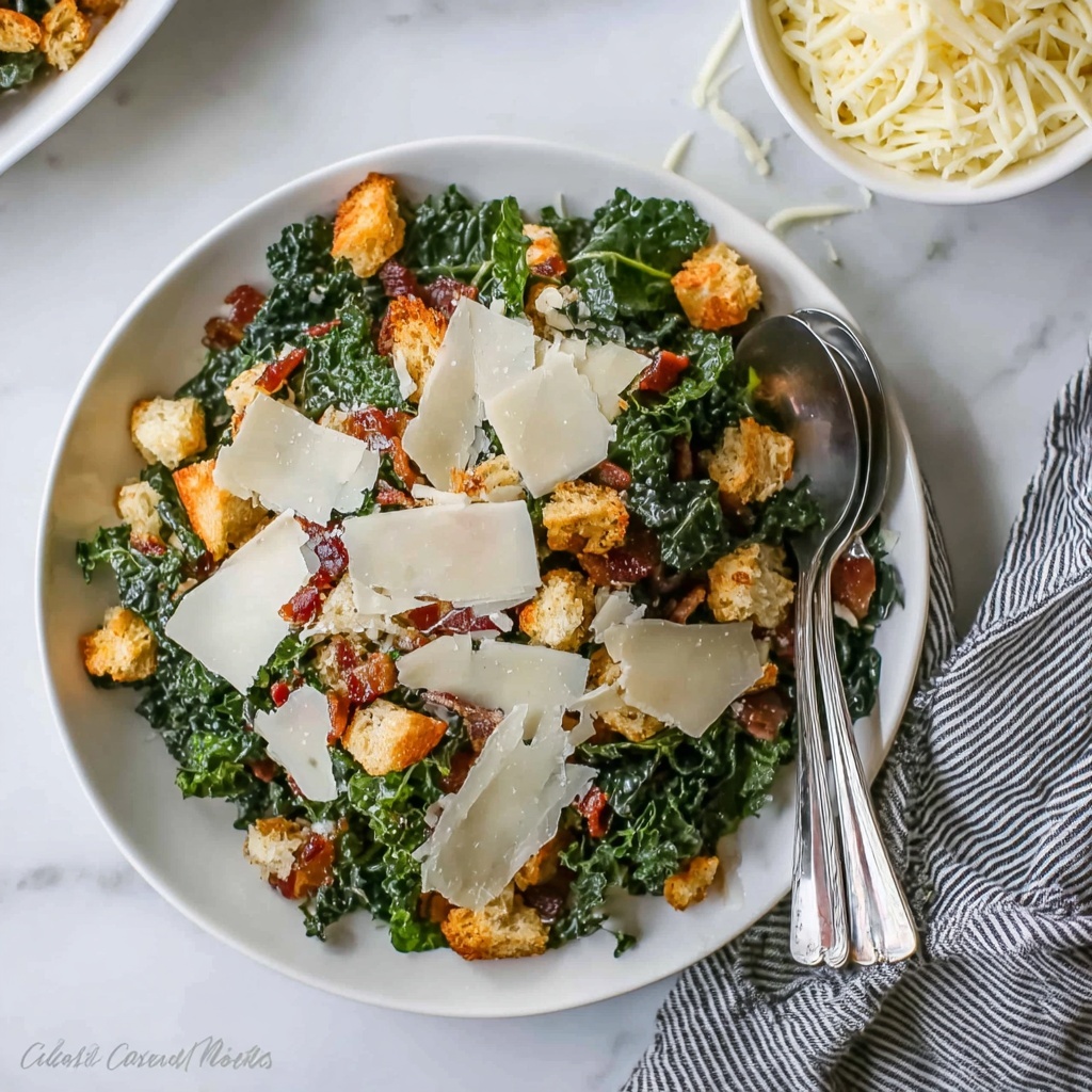 There’s something truly special about this Kale Caesar Salad with Bacon Croutons and Parmesan Recipe that just makes your taste buds sing while feeling fresh and wholesome. The combination of creamy dressing, tender kale, and crispy bacon croutons creates a harmony of flavors that’s hard to beat. I hope you give this recipe a try soon—it’s quick, satisfying, and perfect to share with friends and family. Trust me, once you do, this salad will become a beloved staple in your kitchen!