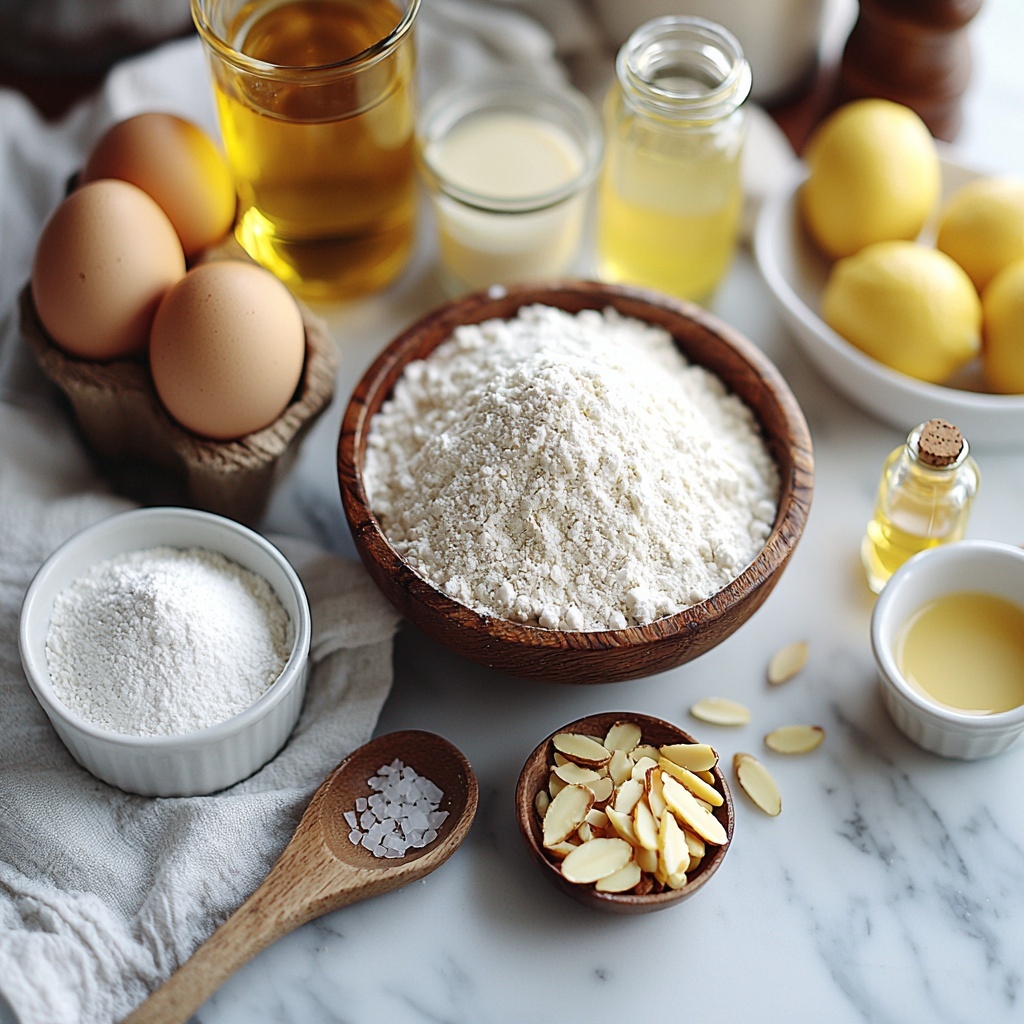 Every ingredient in this recipe plays an essential role in building layers of flavor and the perfect texture, from the light flours creating the crumb to the lemon zest that brings a fresh zing that’s unmistakable. Here’s what you’ll need to make this showstopper: