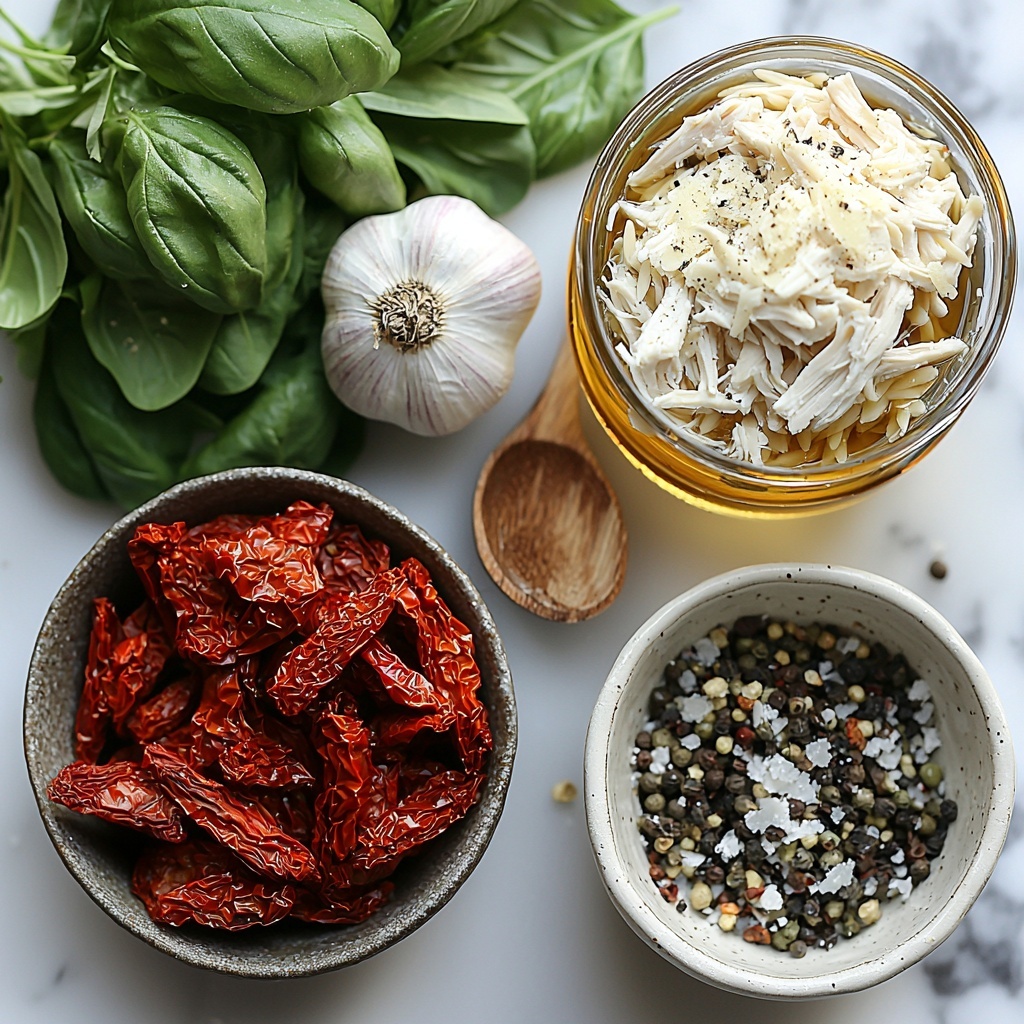 • Sun-dried tomatoes (½ cup, chopped): Adds a sweet and tangy burst of intense tomato flavor, and the reserved oil infuses the dish with richness.