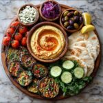 This Mediterranean Grazing Board features a creamy roasted eggplant dip paired with fresh vegetables, olives, feta cheese, hummus, and warm pita bread. Perfect for entertaining, it combines smoky, tangy, and savory flavors in a colorful, shareable platter that takes just over 50 minutes to prepare.