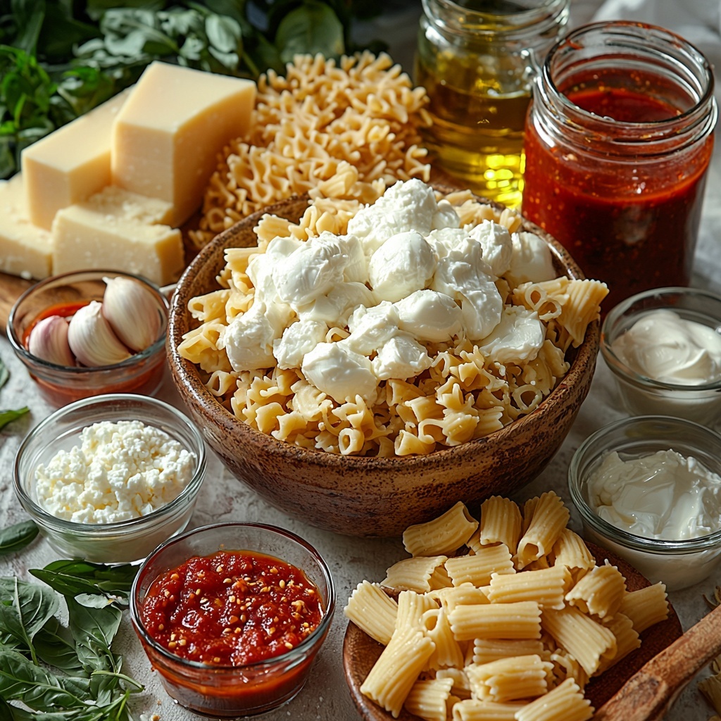 The magic of the Olive Garden Baked Ziti Copycat Recipe lies in its simple yet essential ingredients. Each one plays a crucial role in creating the perfect balance of flavors, textures, and colors that define this dish. From savory sausage and fragrant garlic to the dreamy mix of Italian cheeses, every item adds personality and richness that make this baked ziti unforgettable.