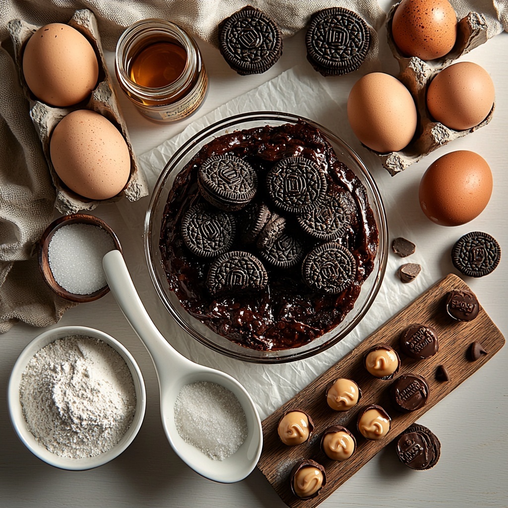 Gathering the right ingredients is the first step to brownie perfection, and this recipe uses simple pantry staples that work harmoniously to build rich flavor, luscious texture, and satisfying density. Each component, from buttery richness to the crunchy Oreos and creamy Reese’s cups, plays a key role in delivering brownies that taste both familiar and extraordinary.
