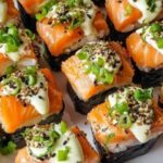 Experience a delightful twist on traditional sushi with these Oven-Baked Salmon Sushi Bites. Combining perfectly seasoned sushi rice with marinated salmon cubes, baked to a tender, slightly crispy finish, and topped with fresh avocado, cucumber, sesame seeds, and green onions, this recipe offers a simple yet impressive 5-star appetizer or light meal.