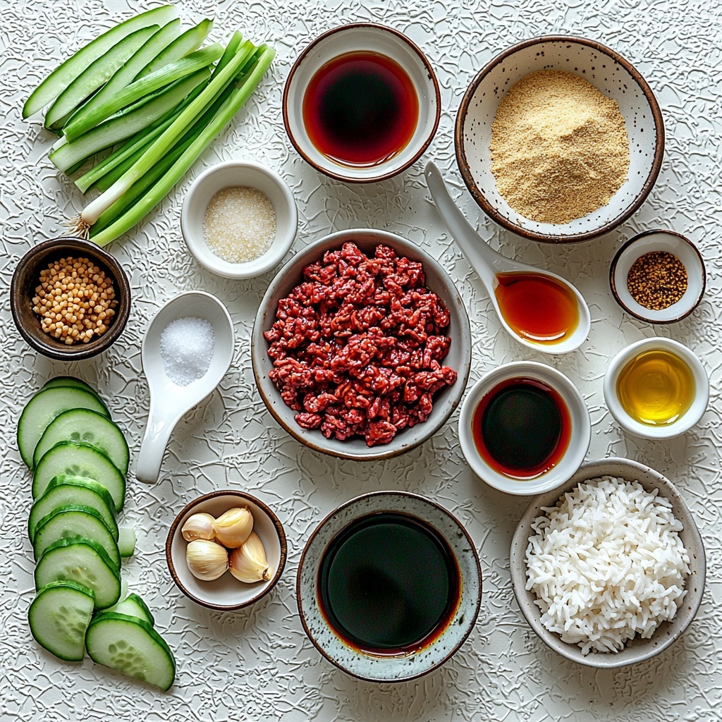 Adding fresh cucumber ribbons adds a refreshing crunch and subtle cooling effect that balances the rich, savory beef perfectly. The bright green spring onions bring a splash of color and mild sharpness, while toasted sesame seeds offer a delightful nuttiness and texture contrast. Finish with a drizzle of sesame oil—it’s a small step that brings the dish alive with warmth and aroma.