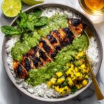 Once your chicken is out of the oven and resting for a few minutes, start plating. Serve over fluffy rice or your choice of base, spoon generous dollops of creamy green sauce on top, and scatter fresh mango and avocado chunks for extra color, sweetness, and creaminess. The final dish is lively, colorful, and bursting with an array of perfectly blended flavors.