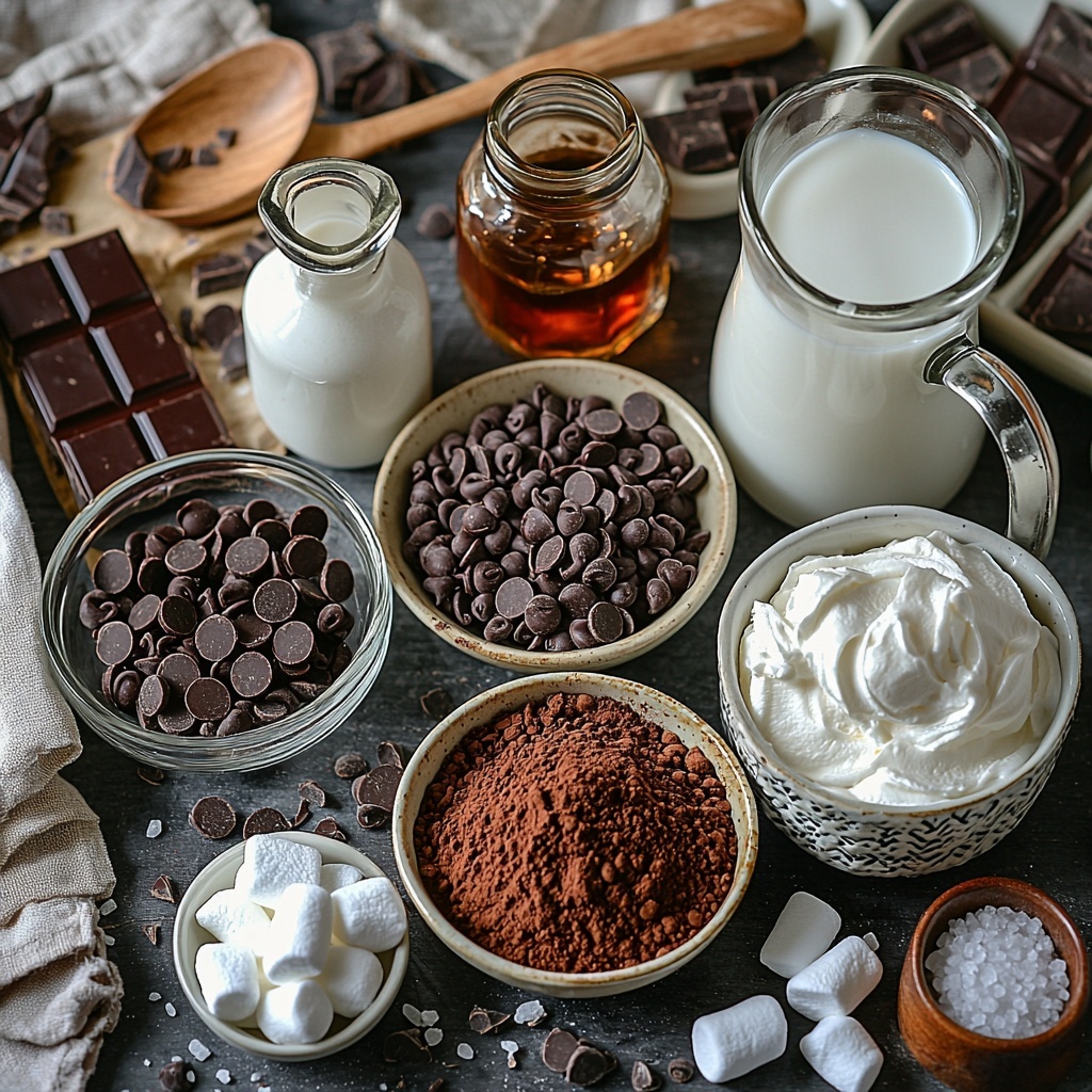 This Rich Homemade Hot Chocolate Recipe relies on a handful of straightforward ingredients, each playing a vital role in crafting a luscious, creamy drink. From the wholesome richness of whole milk and heavy cream to the deep chocolate notes from cocoa powder and chocolate chips, every element is essential to achieving that perfect cup.
