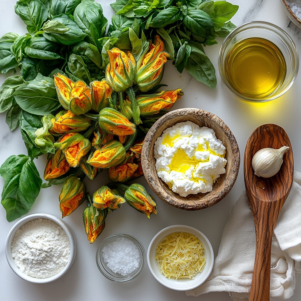 There’s something wonderfully simple about the ingredients in this recipe, yet each one is absolutely essential to crafting that perfect balance of flavors and textures. From the fresh zucchini blossoms to the zesty herbs and the light, bubbly batter, every element plays a starring role in this dish.
