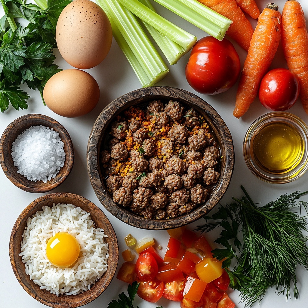 Start by combining the ground pork (or your chosen meat), finely chopped onion, egg, rice, parsley, dried thyme, breadcrumbs if using, and seasoning in a large bowl. Mix everything thoroughly until all ingredients meld together beautifully. Then, dampen your hands and shape this mixture into small, uniform meatballs about 1 to 1.5 inches in size—this ensures even cooking and that tender bite you’re aiming for.