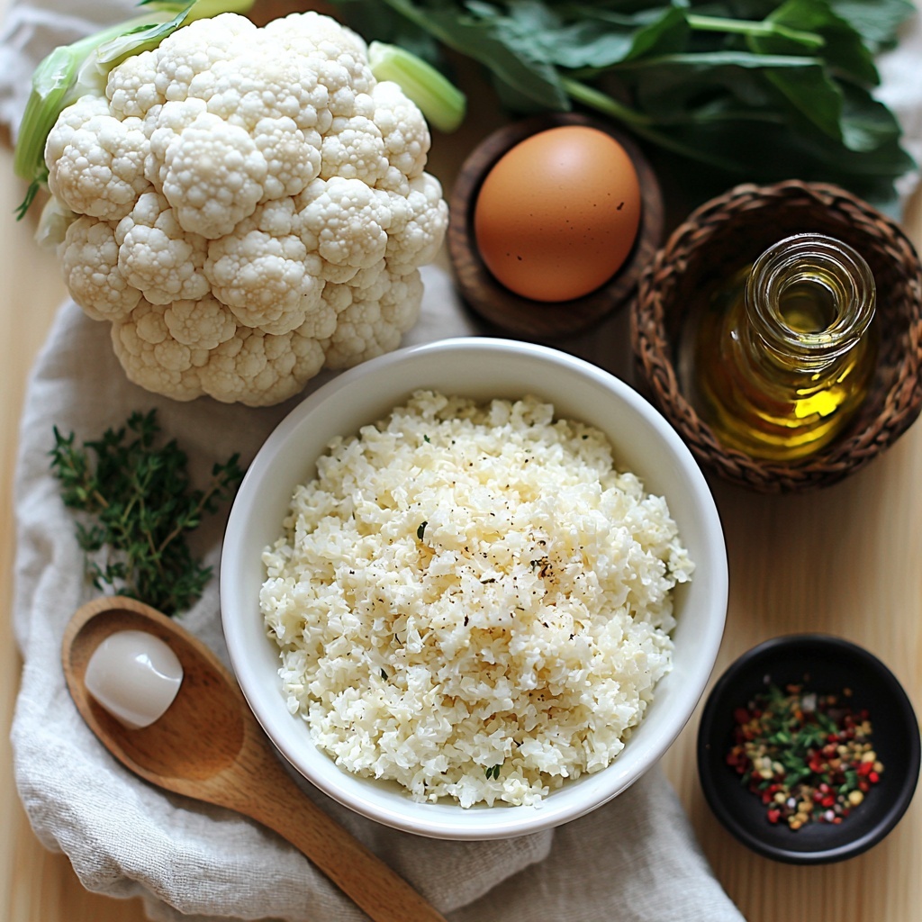 - Mix Ingredients: In a mixing bowl, combine cauliflower rice, the egg, grated Parmesan cheese, onion powder, dried thyme, sea salt, black pepper, and chili flakes if using. Stir thoroughly until all ingredients are evenly incorporated into a uniform mixture.