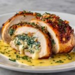 Serve this stuffed chicken with creamy mashed potatoes to soak up any juices, or pair it with roasted vegetables like asparagus or green beans for a fresh, nutrient-packed balance. A crisp side salad with vinaigrette also offers a refreshing contrast that rounds out the meal perfectly.