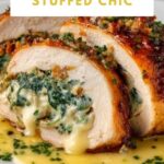 Once baked, let the stuffed chicken rest for about 5 minutes before slicing. This resting time allows the juices to redistribute, ensuring each slice is juicy and tender. Garnish with a sprinkle of fresh parsley for a pop of color and freshness, and you’re ready to wow whoever sits down at your table.