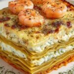 A rich and creamy seafood lasagna featuring succulent shrimp and crab blended with a blend of ricotta, mozzarella, and Parmesan cheeses, layered with Alfredo sauce and baked to golden perfection. This Italian-inspired casserole is a comforting and satisfying meal, perfect for seafood lovers seeking a flavorful pasta dish.