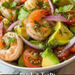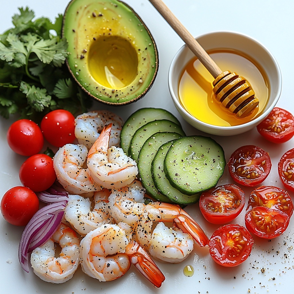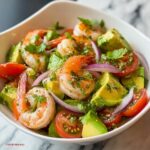 A fresh and vibrant Shrimp Avocado Salad featuring tender sautéed shrimp, creamy avocado, crisp vegetables, and a zesty lime-honey dressing. This quick and easy recipe is perfect for a light lunch or dinner, combining protein and healthy fats for a nutritious, flavorful meal.