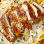 This Skinny Low-Fat Chicken Fettuccine Alfredo is a healthier take on the classic creamy pasta dish. Featuring grilled chicken breasts and a rich yet light alfredo sauce made with low-fat milk and reduced butter, this recipe delivers indulgent flavor without the heaviness. Perfect for a satisfying weeknight dinner, the dish combines tender grilled chicken, perfectly cooked fettuccine, and a luscious Parmesan sauce that’s thickened just right. With simple ingredients and straightforward steps, you can enjoy a gourmet meal while keeping it light and wholesome.