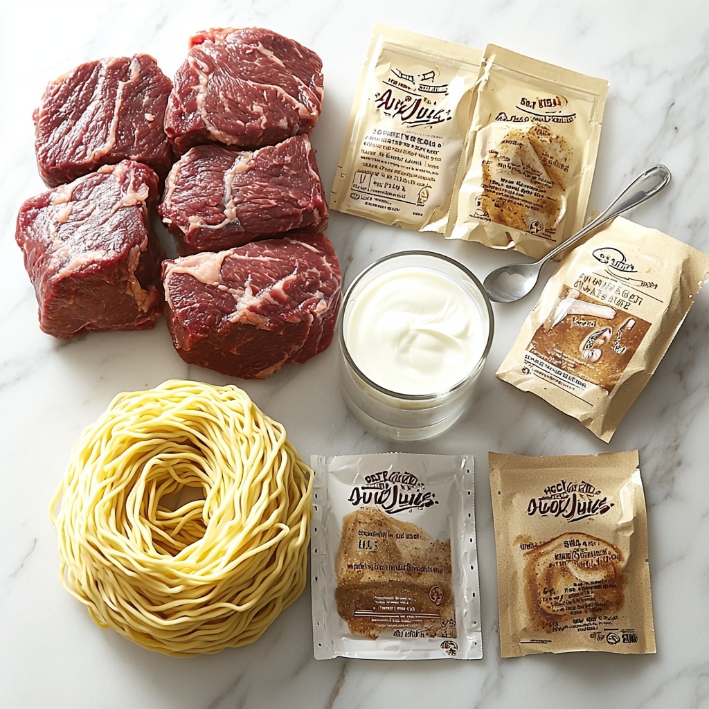 Gathering a handful of simple yet essential ingredients is all you need to make this recipe shine. Each component plays a crucial role—whether it’s seasoning the beef to develop deep flavor or the egg noodles providing a tender, comforting base for the sauce.